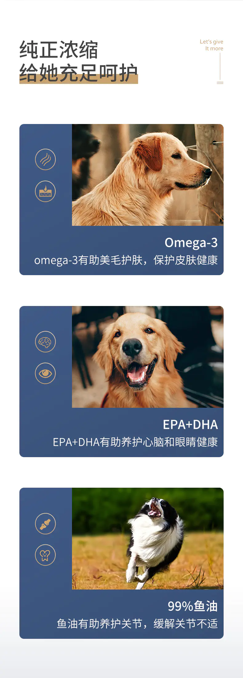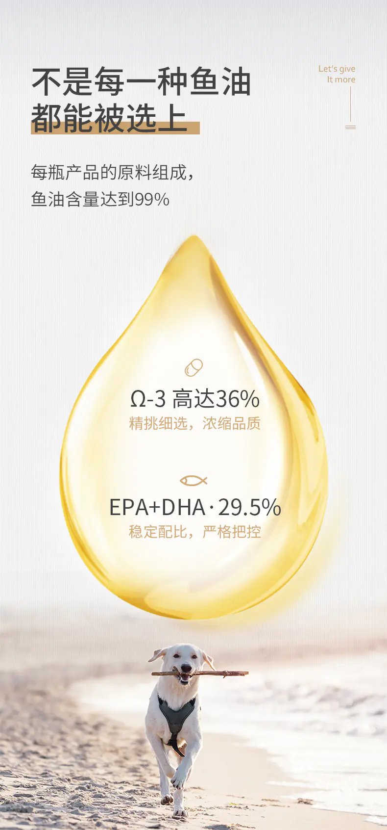 浓缩Ω-3,达到36%,养护关节,帮助美毛护肤。