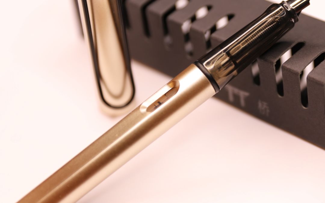 但今天这款钢笔,配备两种简单又干净的上墨方式。一种是旋转吸墨器,拧一拧,墨水就吸上来了,很有趣;
