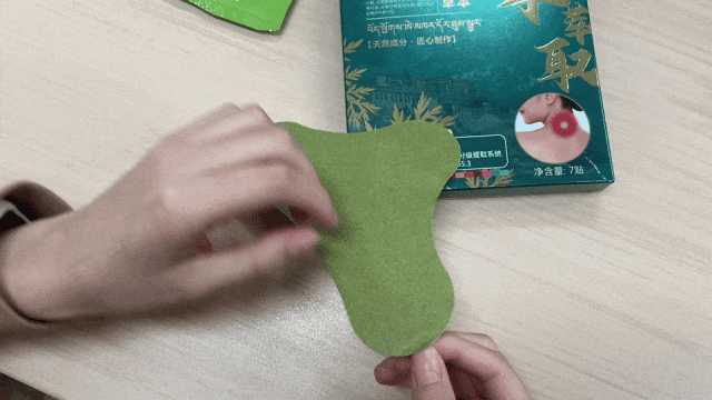 打开之后闻到一股艾草的香味,摸起来软软的,只需撕开离型纸贴到脖颈后,几分钟后微微发热,感觉格外轻松。