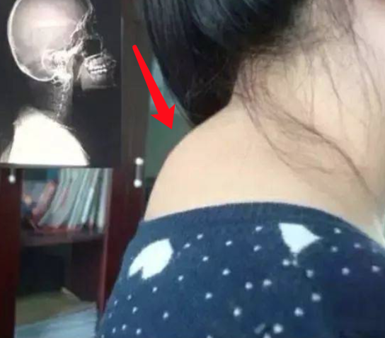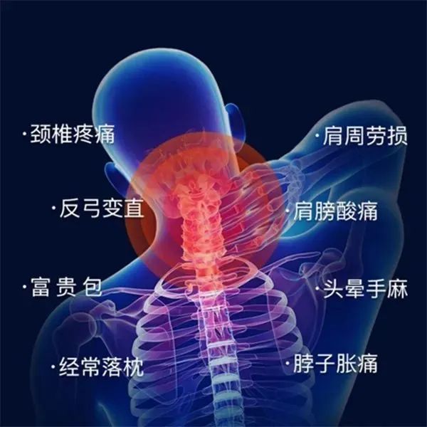 脖子弯曲,错位的颈椎压迫神经、血管,气血不通畅,肩颈酸胀、僵硬麻木,久而久之就变成了鼓囔囔的富贵包。