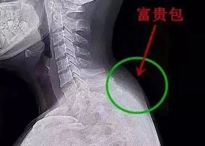 时间久了脖颈前伸不说,后面还会鼓起一个包,称为“富贵包”“乌龟颈”。