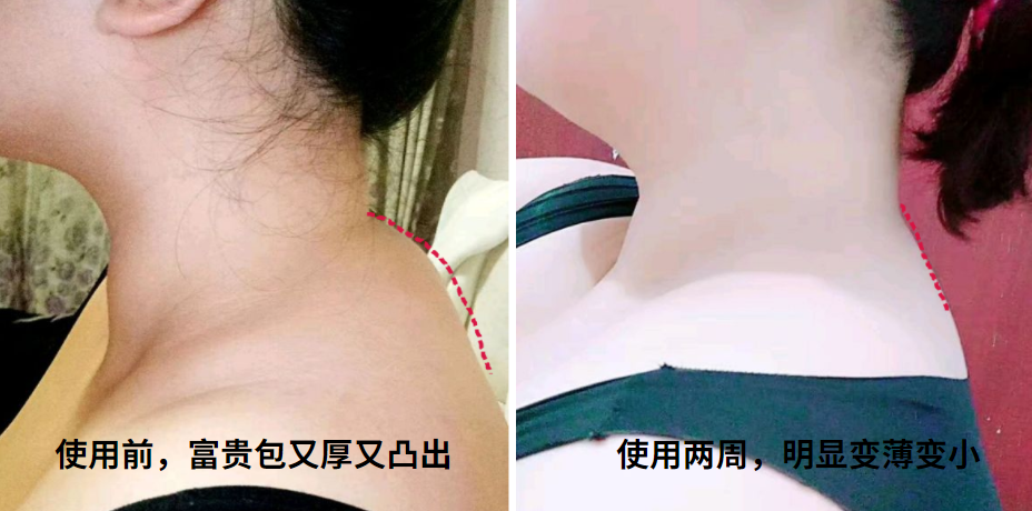 覆盖风池穴、天柱穴、肩井穴等重要穴位,药力深入渗透到到富贵包根源,处发分解脂肪堆积。