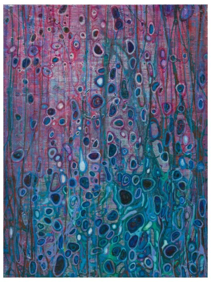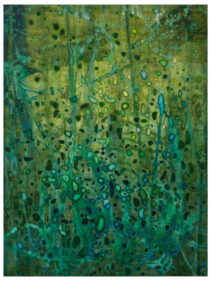 对生命的尊重以及对宏观世界的探索并非源自全然出世的创作态度,也绝非先验性的主观臆想,陈澈是在对客观自然的体察中将其作品带入更高层面的意象世界的。热带丛林、血管组织、自然光斑、水底影像或是宇宙景观,这些具有现实可感性的物象被转化成一系列抽象语言,模糊了形象符号的指代或表意特征,形成直接与心理空间相互映射的图式——这也就是为什么在陈澈的作品中,常常会有超现实主义的梦境之感,真切且疏离。