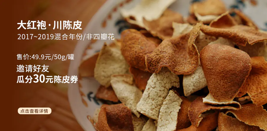 陈皮,药食同源的健康食材,具有理气、调中、燥湿、疏肝理气,除湿健脾等多种功效。