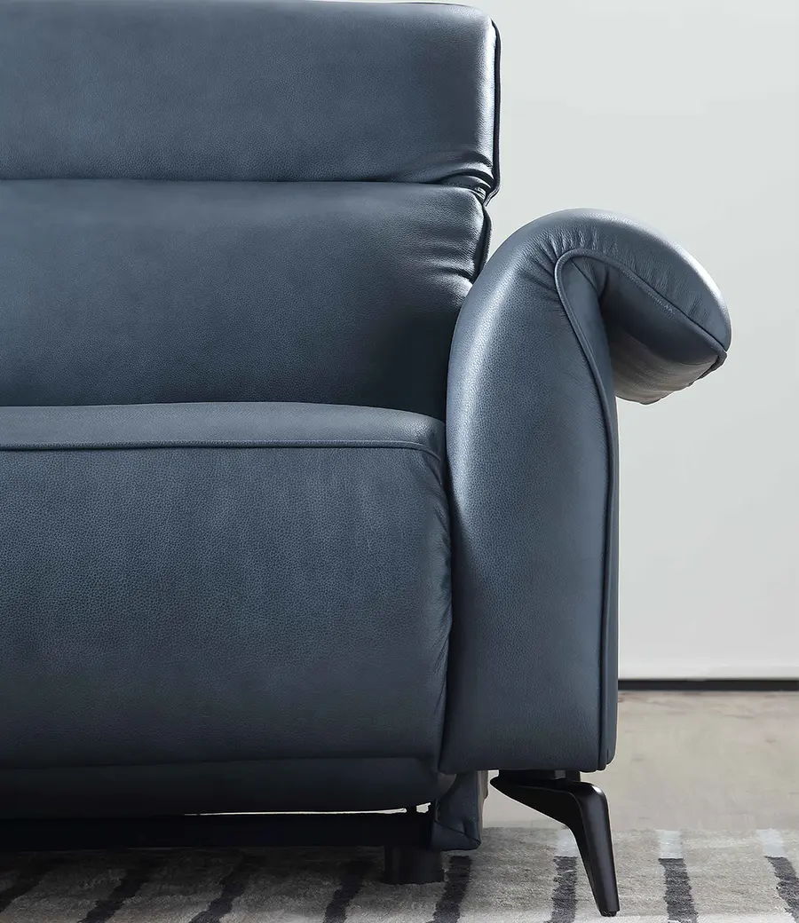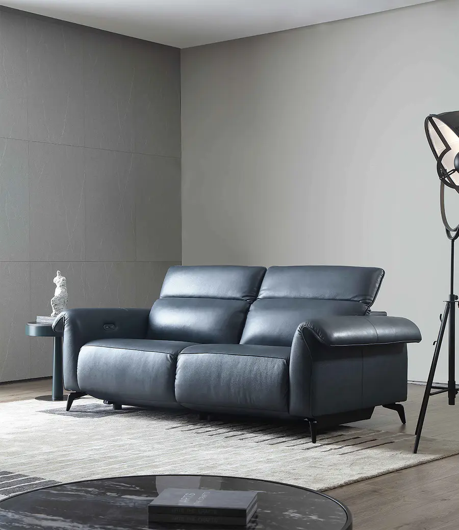 Verona电动沙发,皮质感细腻,柔软耐磨,百搭个性不挑户型。流线型薄扶手设计,符合人体倚靠的习惯,兼具时尚轻奢感。护脊加高靠背,填充柔软弹力海绵,贴合腰背符合人体工学,放松缓解背部疲劳,实力撑腰呵护脊椎。电动躺位收放自如,同样拥有三人、双人与单人款三种尺寸选择,一键切换各种生活姿势,舒适躺姿激发生活乐趣。