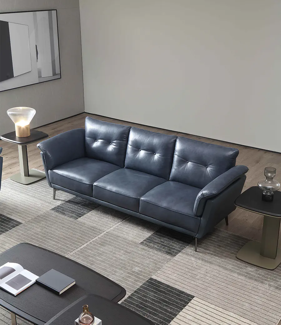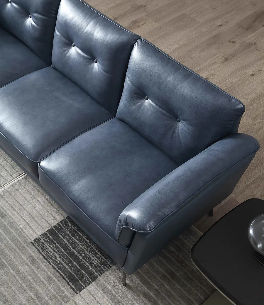Venice三人沙发带着些许酷感,潮流蓝色展现时尚大气的都市肌理元素,纤薄扶手和后背造型细致精美,扶手两侧的有着饱满柔软弹性靠包,给予舒适倚靠与包裹感。沙发选用高密度海绵填充,饱满厚实,高回弹性分散压力。尺寸上拥有三人款,二人款与单人款三种选择,满足空间需求,轻松坐拥优雅生活。