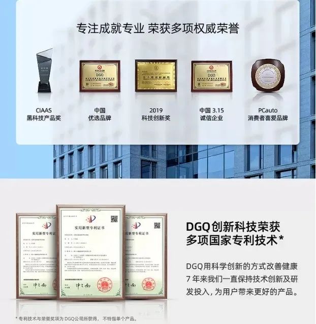 自2016年以来DGQ以科技守护健康为使命,坚信科技创新改变生活,获得众多荣誉~