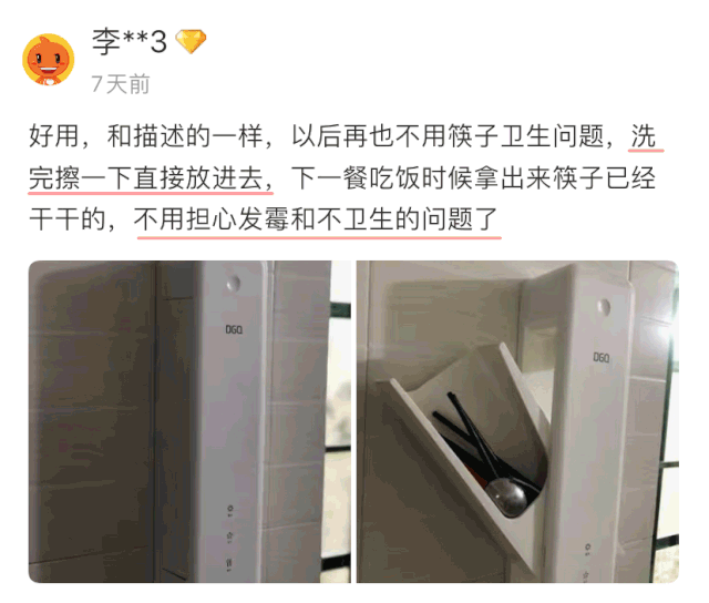 刚清洗完的筷子和餐具不用特意去沥水,直接放进去,就可以被快速烘干,从根源上破坏了细菌生长的有利环境,治标又治本!