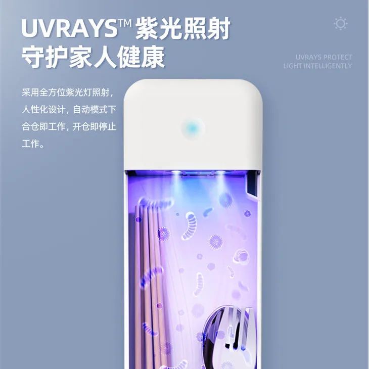 通过紫外线强力杀菌,破坏细菌机体细胞分子结构,造成致死性损伤,杀除金黄色葡萄球菌、白色念珠菌、大肠杆菌……等多种常见细菌,使用更安心。