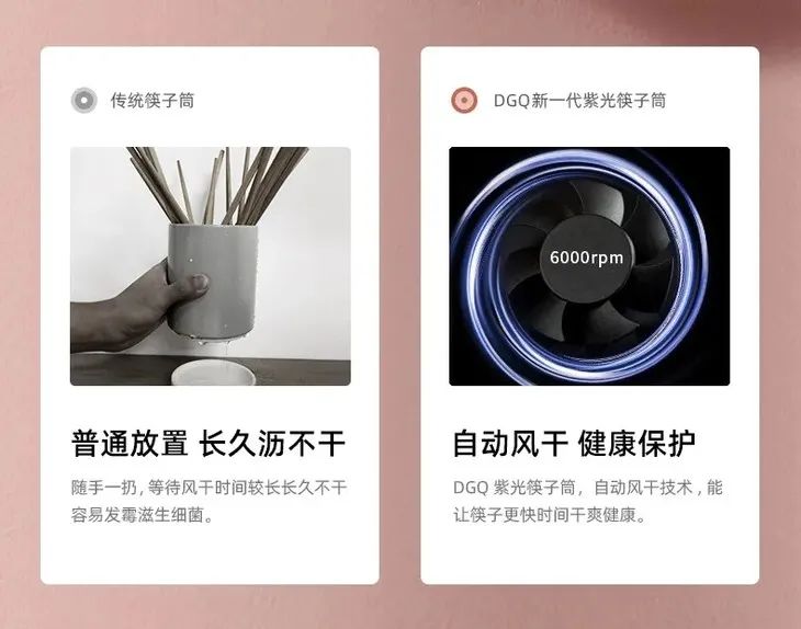 而这款筷子筒,内置了转速为6000rpm的高速风干系统,不让霉菌存在任何滋生的机会。