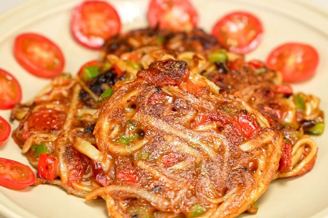 软糯焦香,时不时还能嚼到鲜蔬的清甜。能让不喜欢蔬菜的人也吃完一整块。