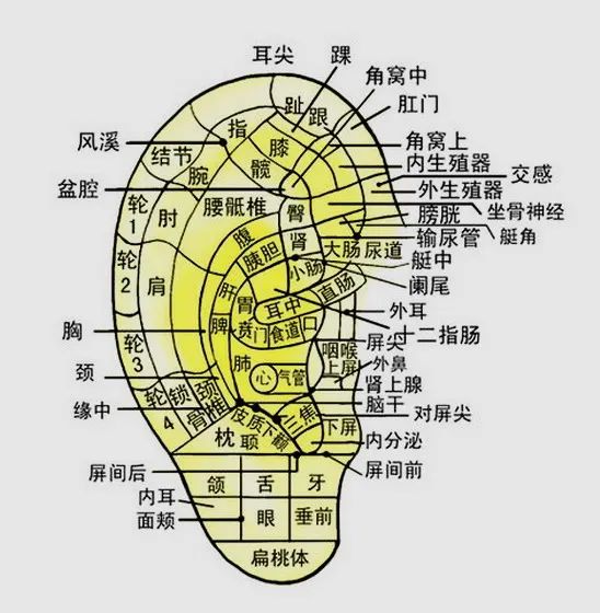 人体的各个部位都可以在耳朵上找到相应的位置,当身体出现问题,耳朵的相关区域也会出现反应。