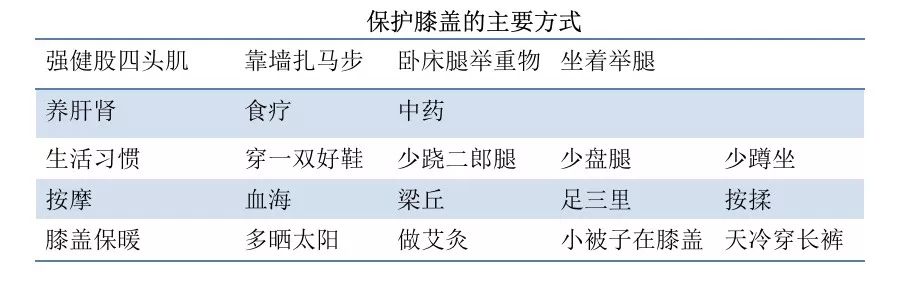 强健大腿肌肉、养好肝肾、维持好的生活习惯、按摩和膝盖保暖来进行都是经过医学证明,行之有效的方法。