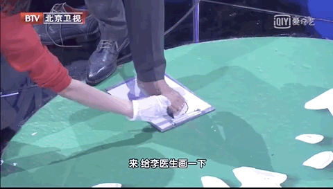 在纸板上描出自己脚的轮廓,鞋子也是类似,来源:《关节里的“致命骨”》,北京卫视我是大医生