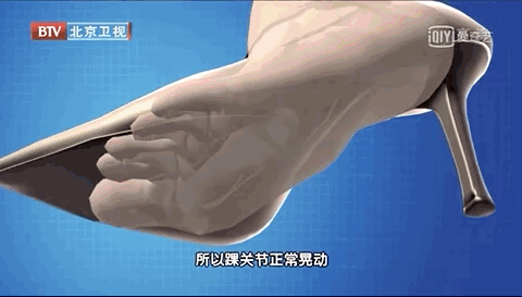 高跟鞋将重量集中在前脚掌,不稳,走动时膝关节会晃动,不利于膝盖,来源:《关节里的“致命骨”》,北京卫视我是大医生