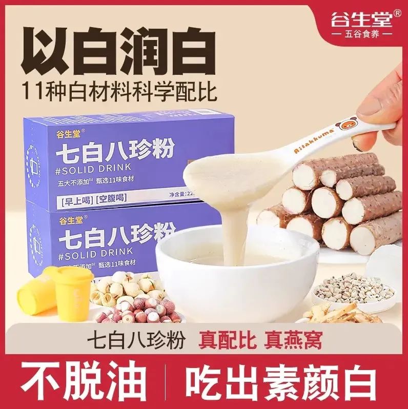 每天一杯七白八珍粉,滋养脾肺,让你由内而外白得发亮~