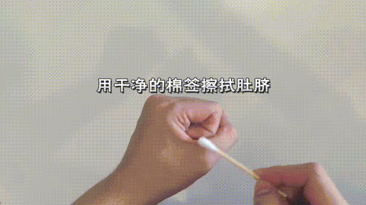 拿一根干净棉签再次轻·轻放入肚脐吸干水分;