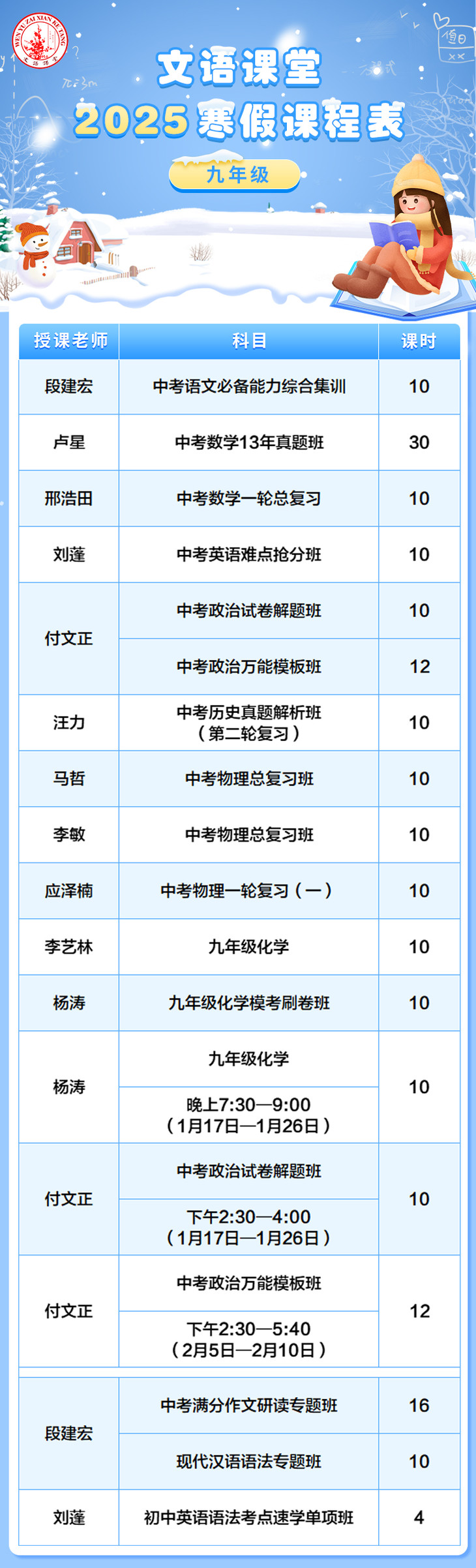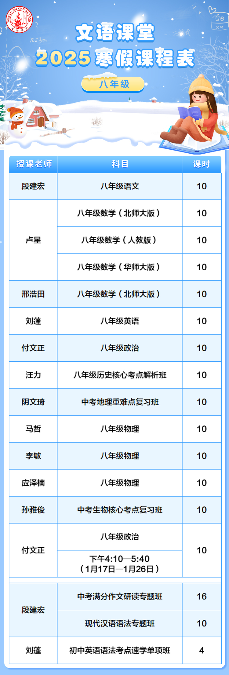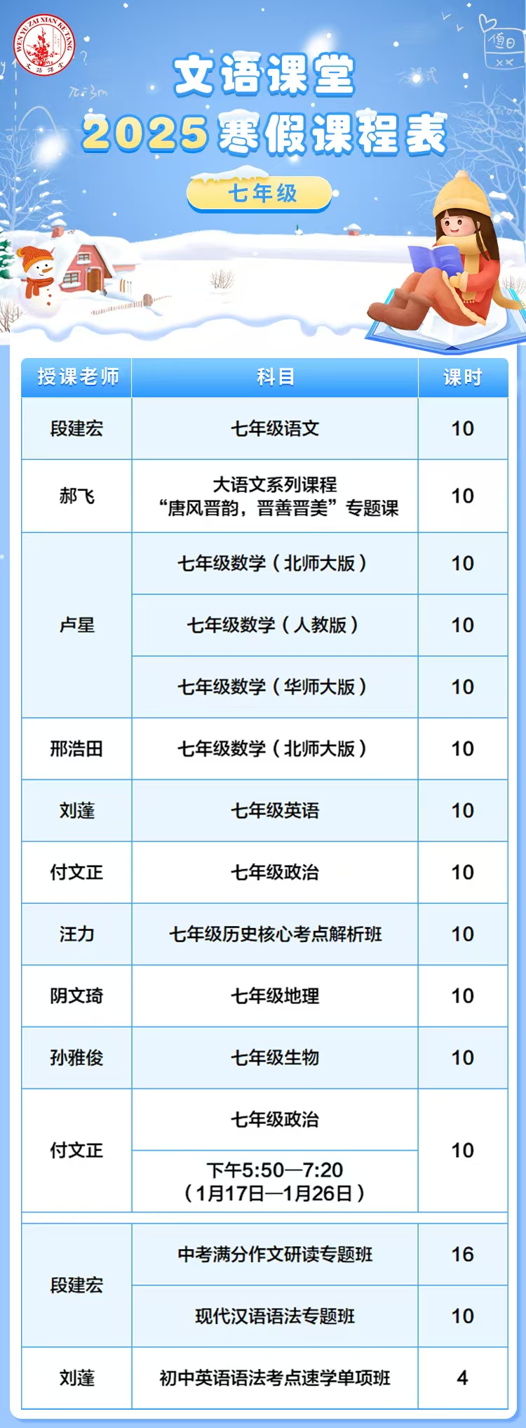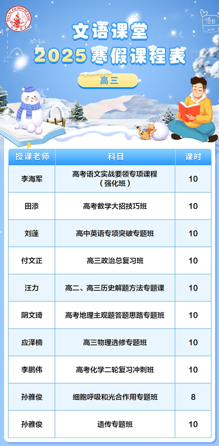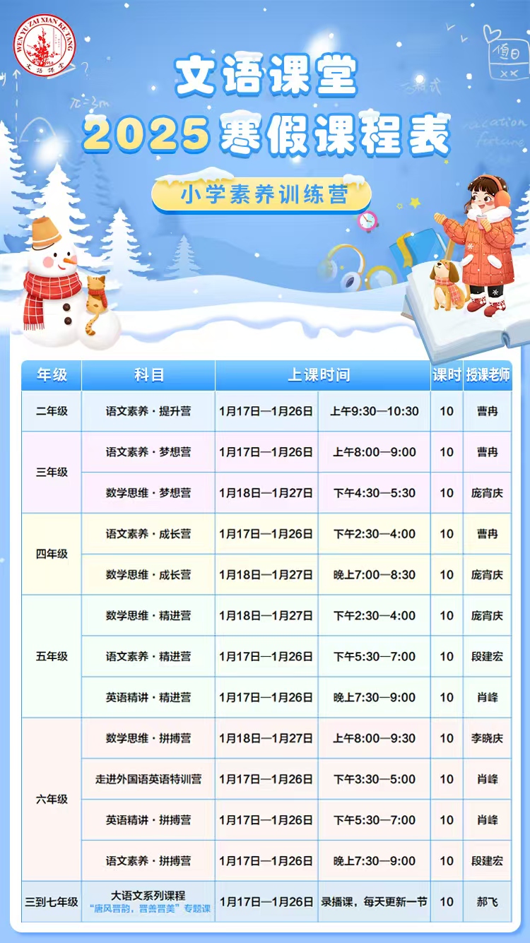 文语课堂2025寒假课程说明