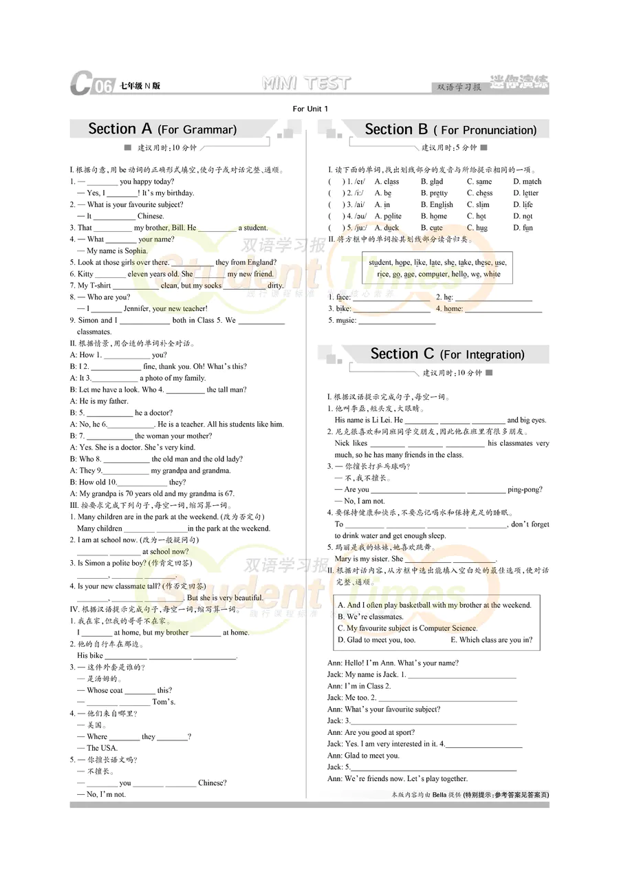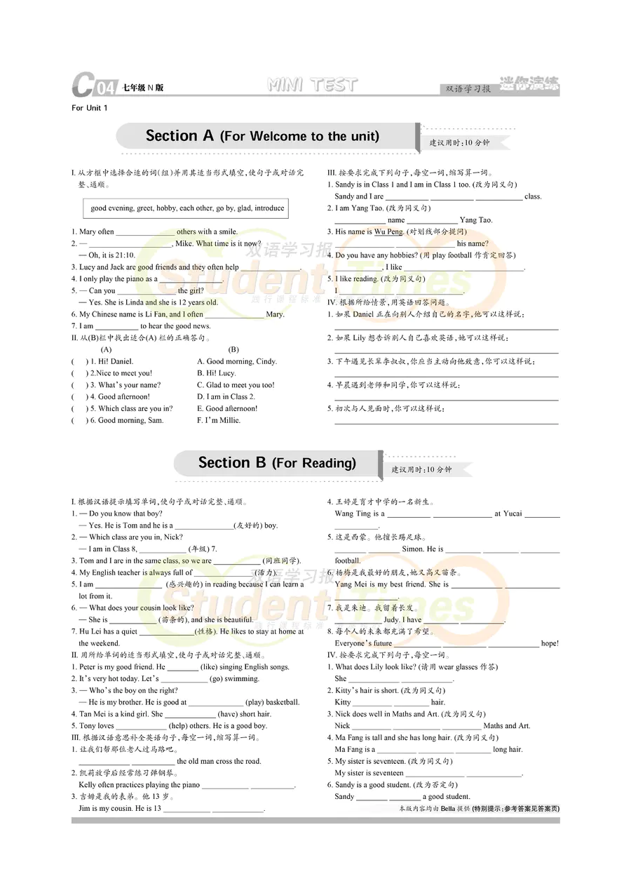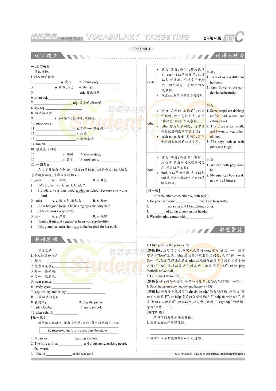 初中英语 七年级 N版同步辅导 C刊