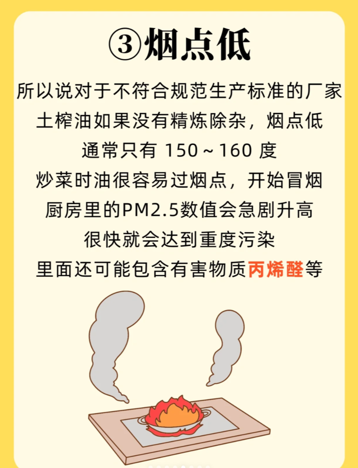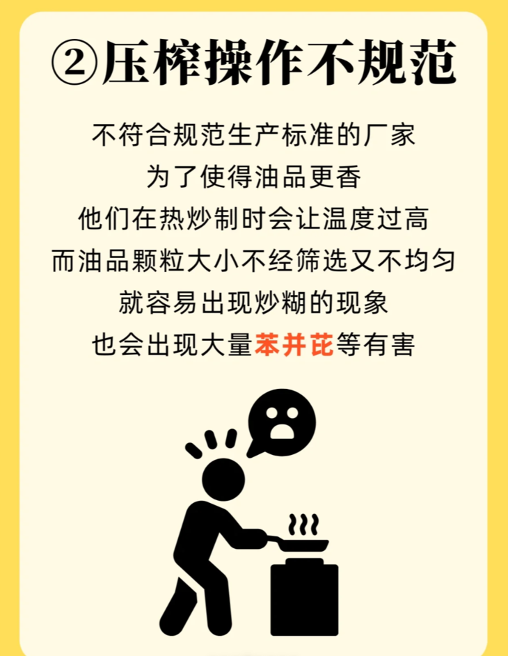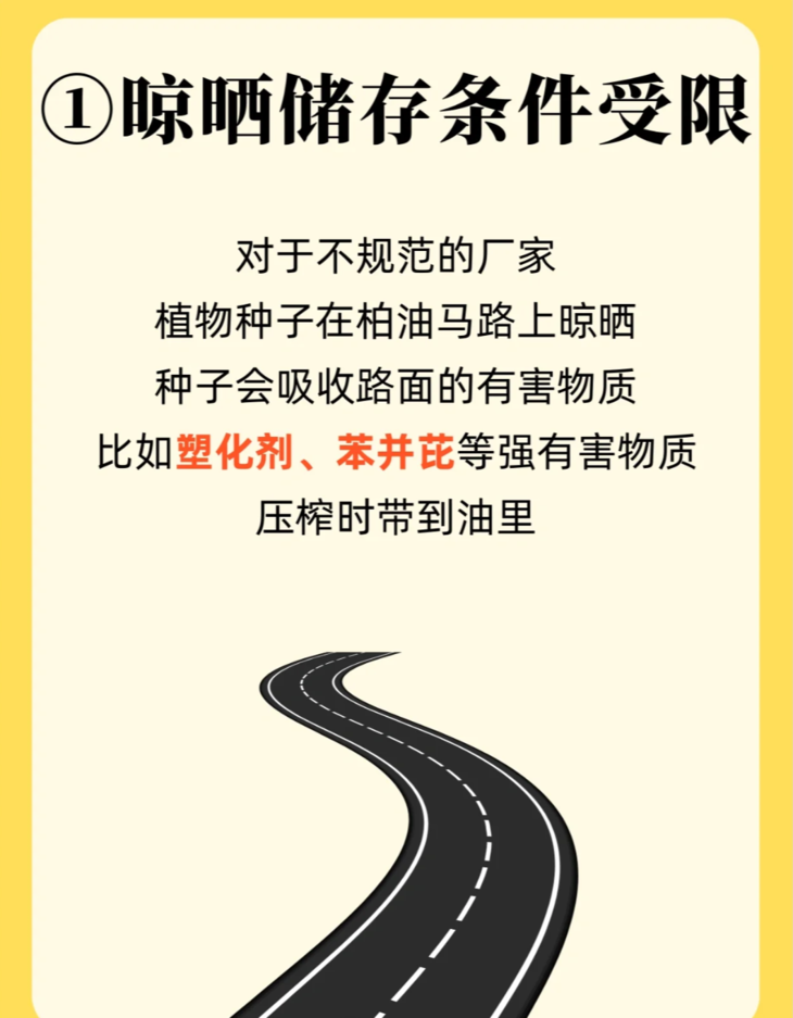 有一些不合格的厂家,因为生产方式存在很多问题,导致了大量不❗合❗格❗的土榨油。