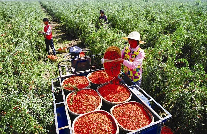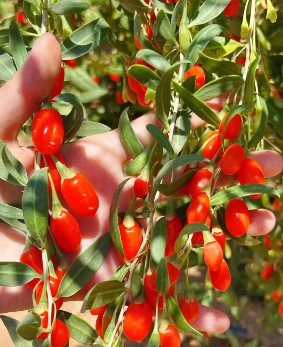 种植出来的枸杞粒大汁多,皮薄肉厚,色泽浓郁,富含多糖,单糖含量少、甜菜碱含量丰富