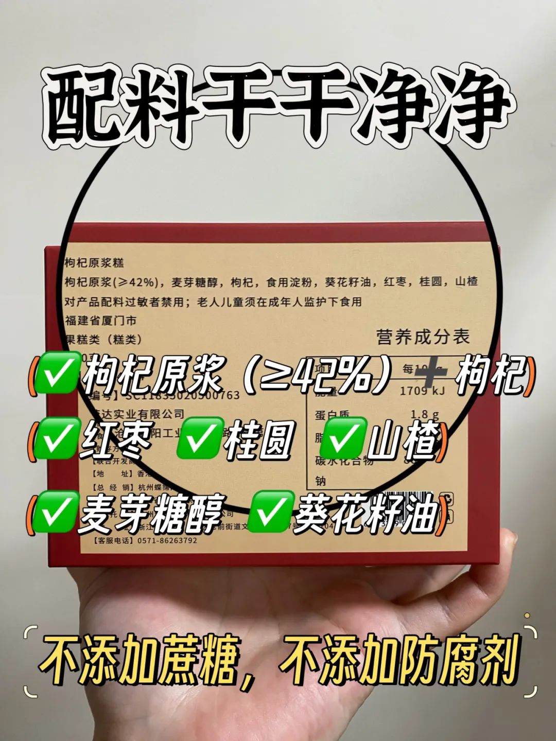 但这款李时珍出品的枸杞原浆糕,配料表干干净净,没有任何多余添加!