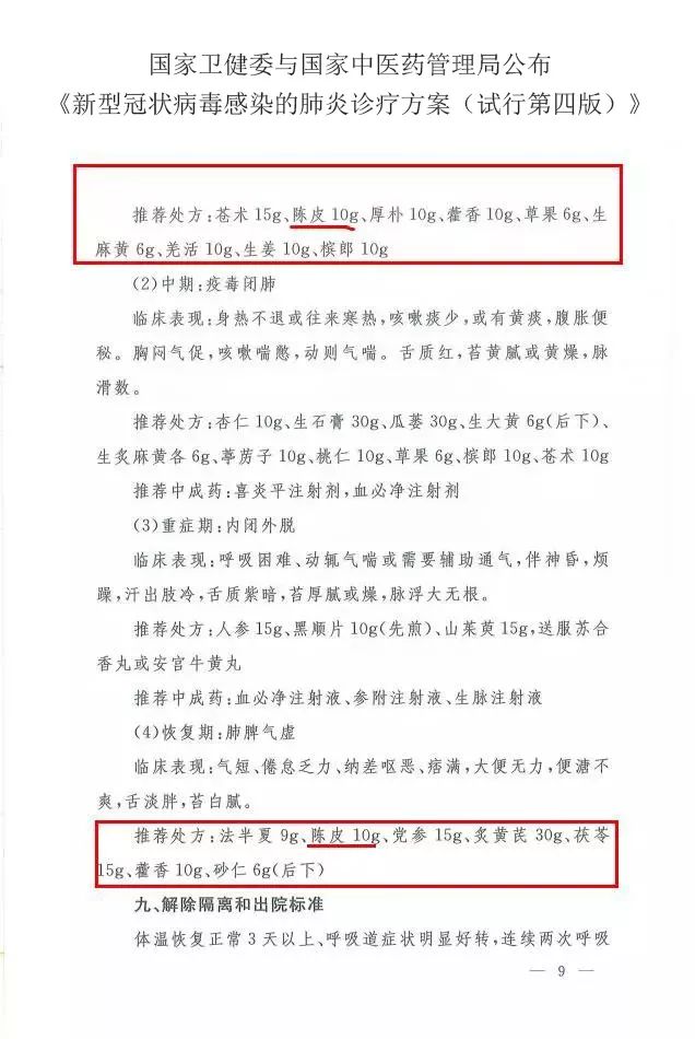 陈皮连续两次列入诊疗方案中