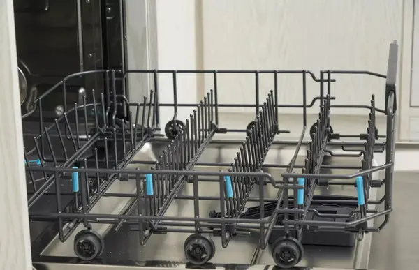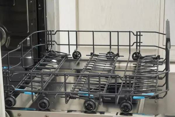 给大家看一下内部的碗篮。这台洗碗机为15套容量,可以容纳更多餐具,有一定高度的锅具、烤盘等等也可以放得下。