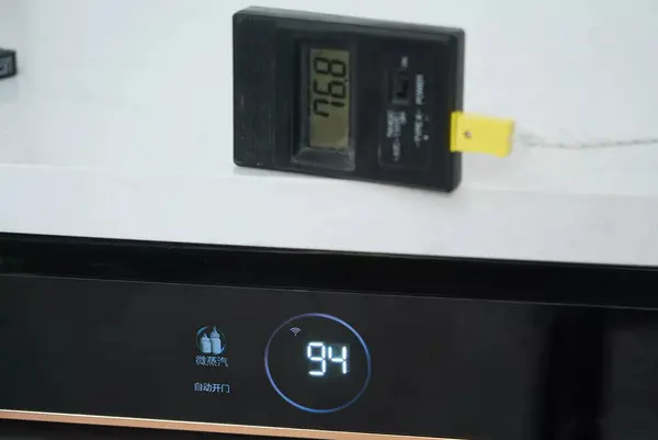 我还事先在碗篮上绑了个热电偶温度计,可以看到蒸汽洗程序中,舱内温度大约为80℃。