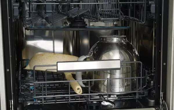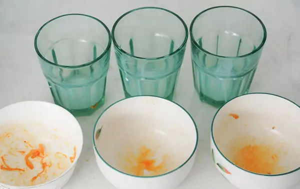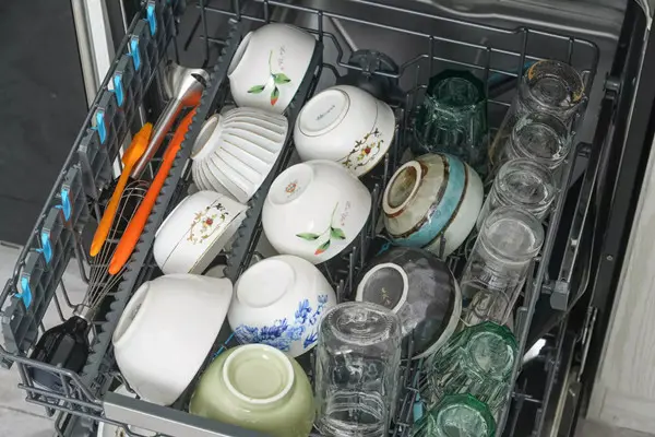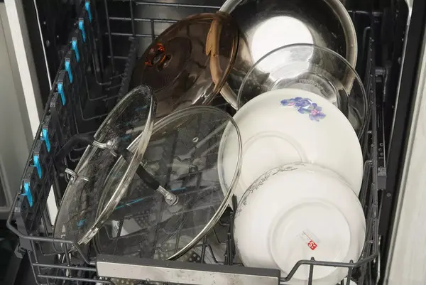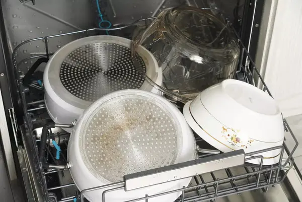 清洗过后,拉开洗碗机,之前满是油渍的碗碟都已经被清洗干净了,底部的清水却变成了乳白色。