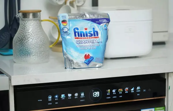 我使用的是finish亮碟的量子极净洗碗凝珠,多效合一,遇水即溶,不需要再加亮碟剂了。