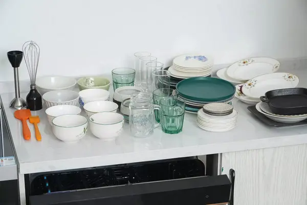 上碗篮放进去了10个饭碗、8个水杯,15套的容量能满足一大家子人的餐具清洗需求,就算有朋友来聚餐也不怕了。