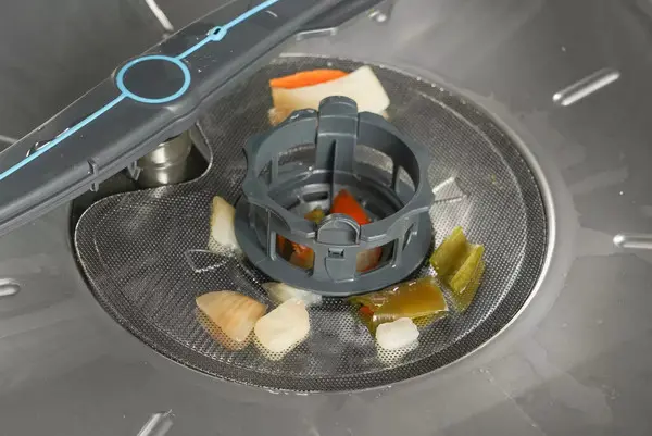 碗碟上残留的大块食物残渣,会被过滤网拦截,直接取出来倒掉即可。