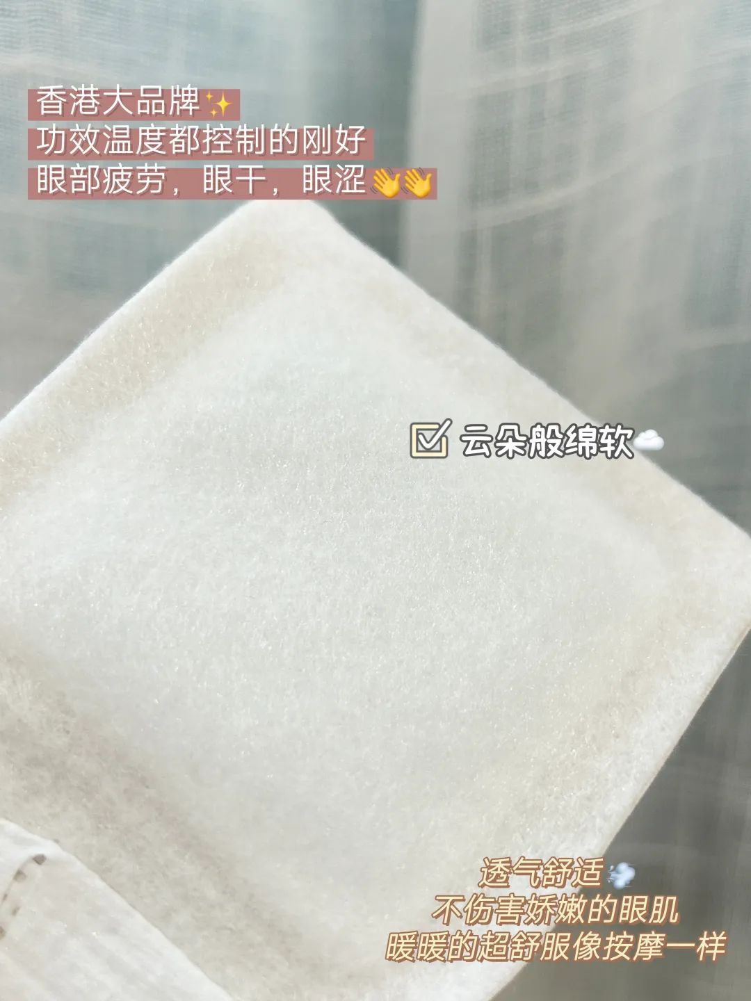 1.保护视力,过滤蓝光伤害 2.保护视网膜,延缓眼睛老化 3.预防近视加深,眼部疾病等在忙绿的生活中,不要忘记优待自己,每一次蒸汽热敷都是一种惬意享受。戴上它,身心舒泰,快速进入梦乡,对失眠星人再好不过了!再加上叶黄素精华的滋养,细纹、黑眼圈等眼部问题都得到了明显的变化。黑眼圈和眼袋都消失不见了,晚上睡得超级香,第二天自然醒,精气神儿直接拉满~加宽弧形设计,精准覆盖眼周穴位,加速眼周血液循环,缓解眼干目痛,疲倦肿胀感!非常适合坐车、午休或者打个盹,晚上睡觉前也是可以随时来一片的~亲肤绵柔,全天好用,采用改机无纺棉布材,戴上服帖又舒适!贴近眼睛的一层是新疆长绒棉,触感轻轻柔柔,亲肤透气,皮肤完全不会有刺痛感。来一波到手实拍,很精致,囤了好多,给家里人也买了~