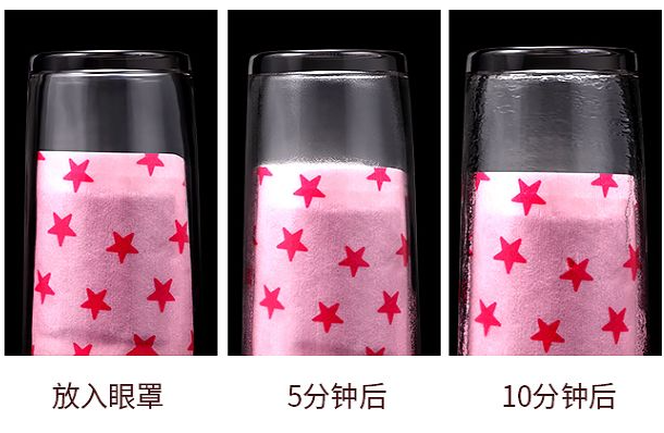 10分钟后,玻璃杯上的水蒸气凝结成水珠,说明眼罩确实是在发热产生蒸汽温润你的眼周!它的蒸汽热敷效果还经过了专业机构的检测认证的!直接拿实力说话!打开蒸汽眼罩大概有5秒左右就开始慢慢发热,没多久温度慢慢升至40℃左右,持续长达30多分钟的温热蒸汽进入眼部肌肤。40℃的恒温发热技术能够长时间的温润干涩疲劳的眼部。慢慢散发出来的蒸汽会使眼部更滋润放松,摆脱眼部疲劳干涩,如同给眼部做了个暖暖的水润SPA!而且通过蒸汽热敷能够迅速打开眼周毛孔,让眼部得到滋润的同时,加快促进眼周血液循环。戴上香港大药房蒸汽眼罩,40℃蒸汽恒温发热感觉就像有一双暖暖的小手给自己眼睛按摩,一瞬间疲劳的眼睛放松了许多!一边促进眼周血液循环,一般温润双眼,轻而易举缓解眼睛干燥、肿胀等不适感。坚持使用一段时间,眼睛不仅更明亮了,黑眼圈也都被“蒸”掉了,眼部的暗沉改善效果太明显了!午休时间直接戴着香港大药房蒸汽眼罩休息,睡醒后肿眼泡都被敷没了,双眼炯炯有神,秒变星星眼!无纺布设计,贴合面部舒适亲肤,弹力刚刚好不勒耳,不管是大脸小脸都可以用!