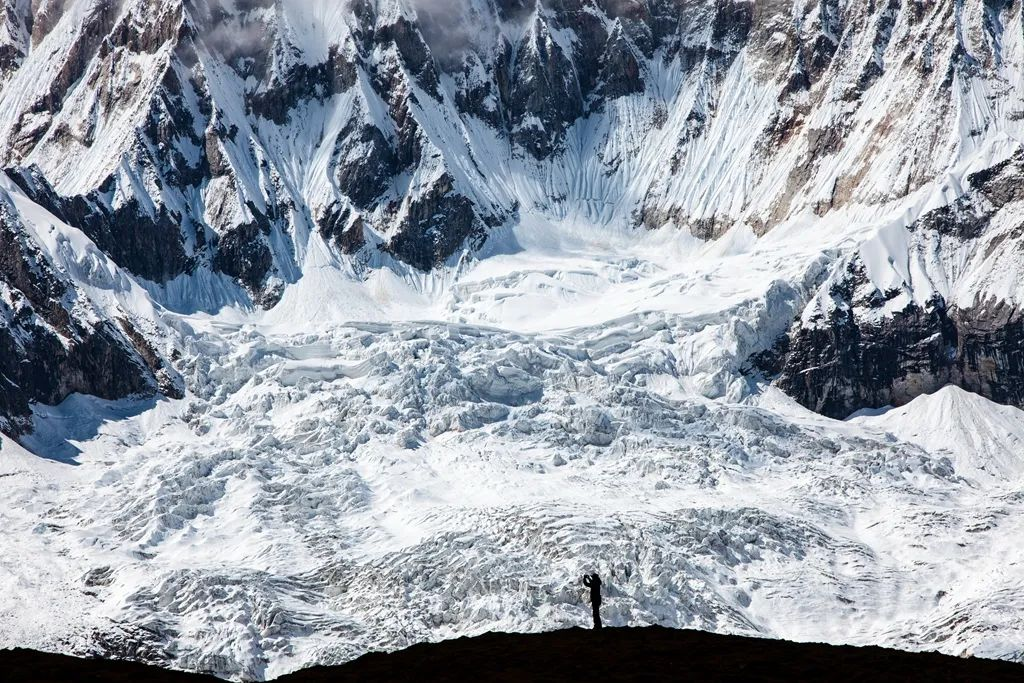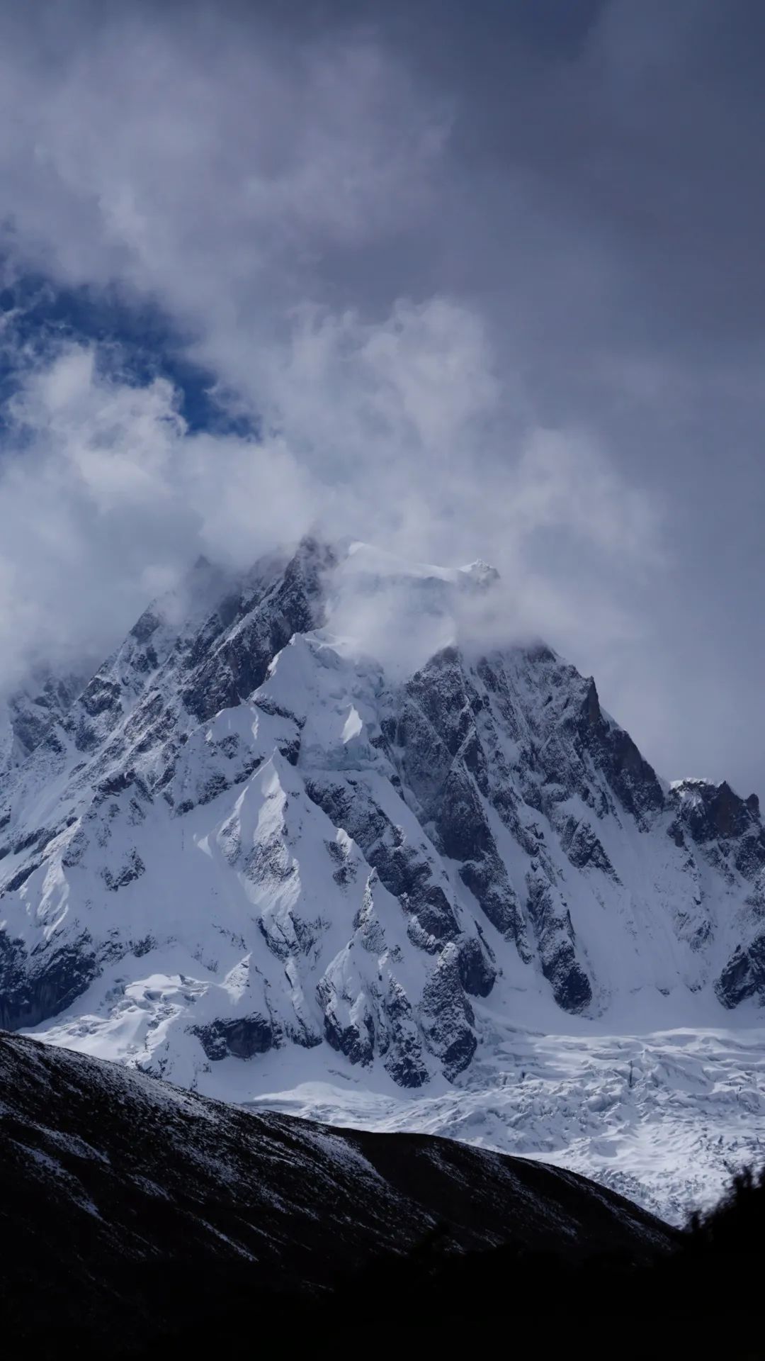 ,同一片区与它相依而立的有 6 座 7000 米以上的山峰,远观如一道顶天立地的冰雪屏障,近看谷内冰川横卧、冰崖冰墙壮阔。夏有山花冬有蓝冰,四时四景皆美艳。