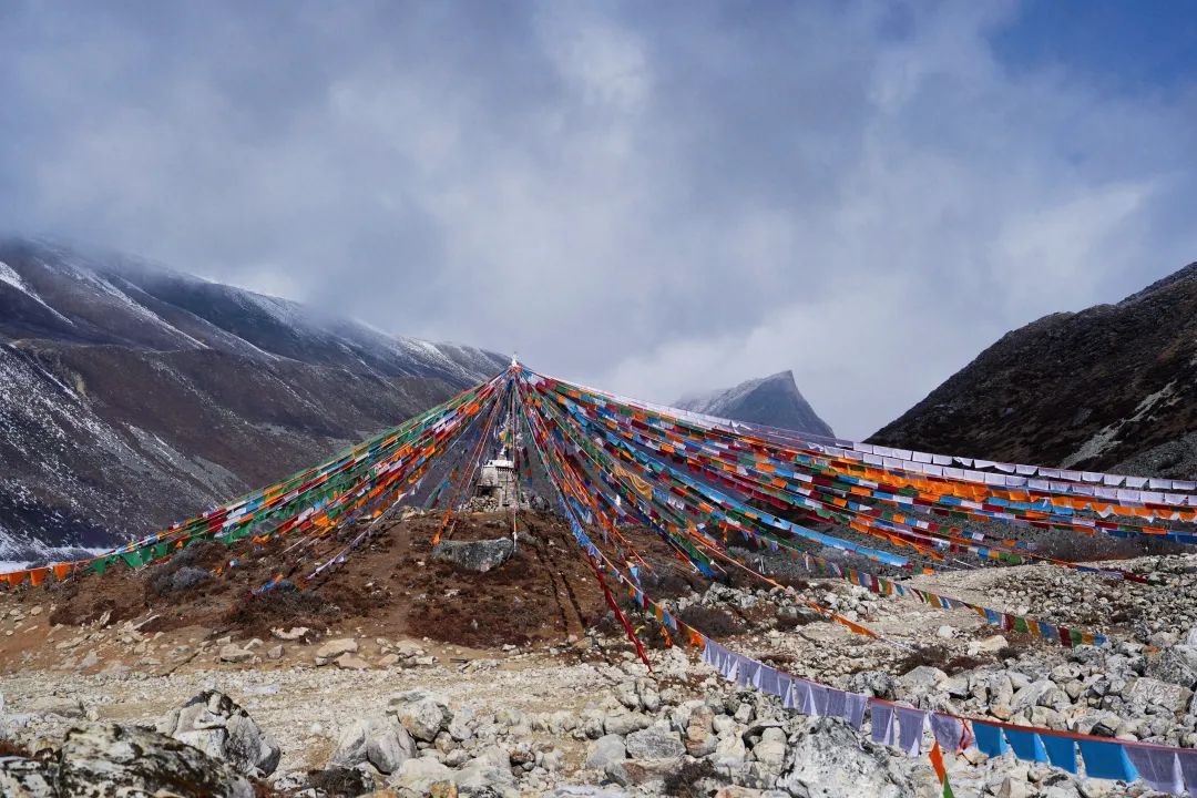 ,这些沟通世俗与灵界的通用媒介,至今往后留在 5000 米的山间垭口上。五彩经幡在大地与苍穹之间成串飘荡,