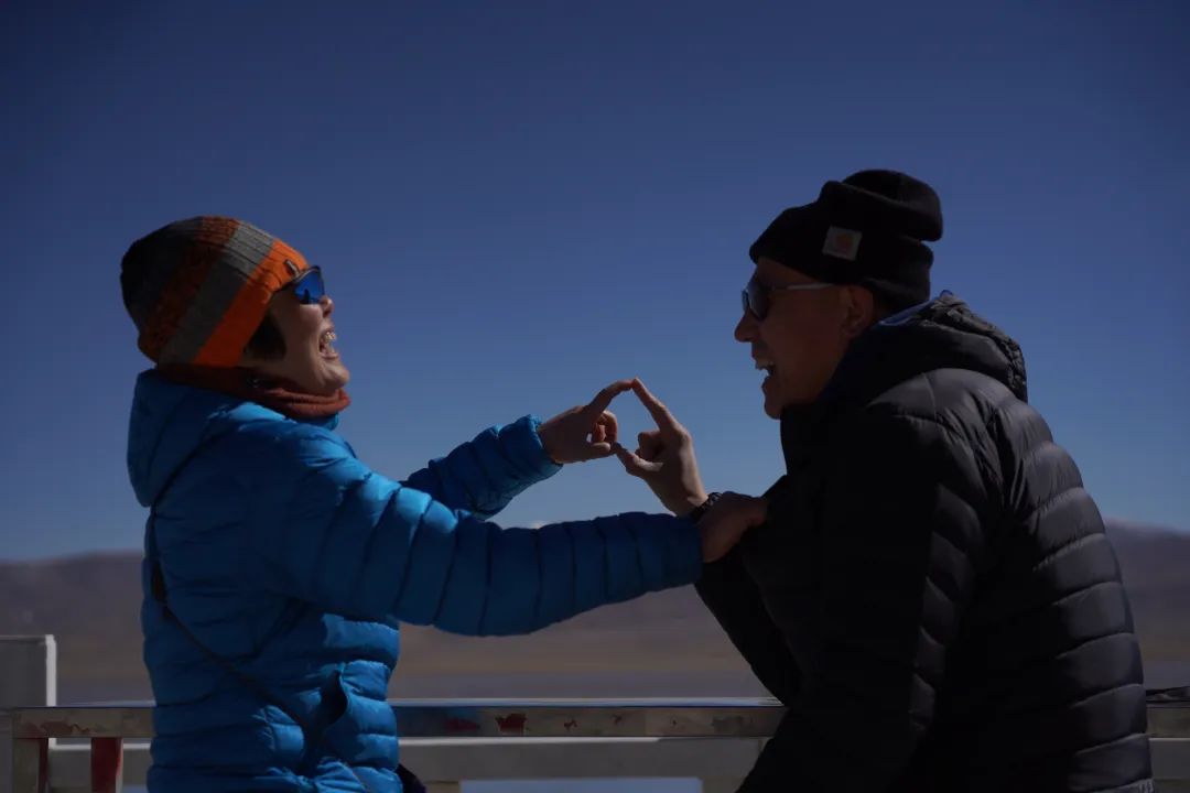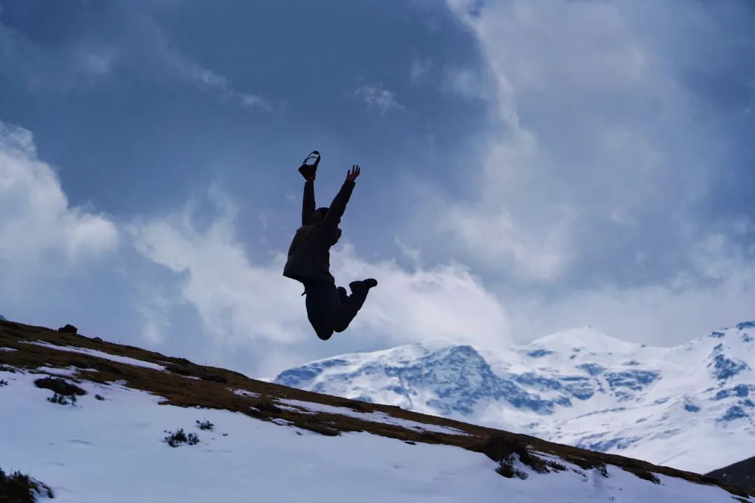 我看到有人静坐湖边聊天,有人携手相视大笑,有人雪地里滑滑梯,有人追风奔跑,有人一跃比雪山高......