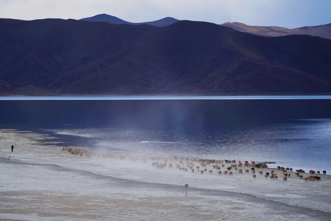 出没,大眼睛呆萌得很;前往日托寺的路颠簸、扬尘四起,混着湖水因光线变换的颜色,有种既宁静又喧嚣的美;驶离羊湖,海拔先升后降回拉萨,雪山尖尖时而冒个头,最后看一眼云雾中的库拉岗日,再见了山南。