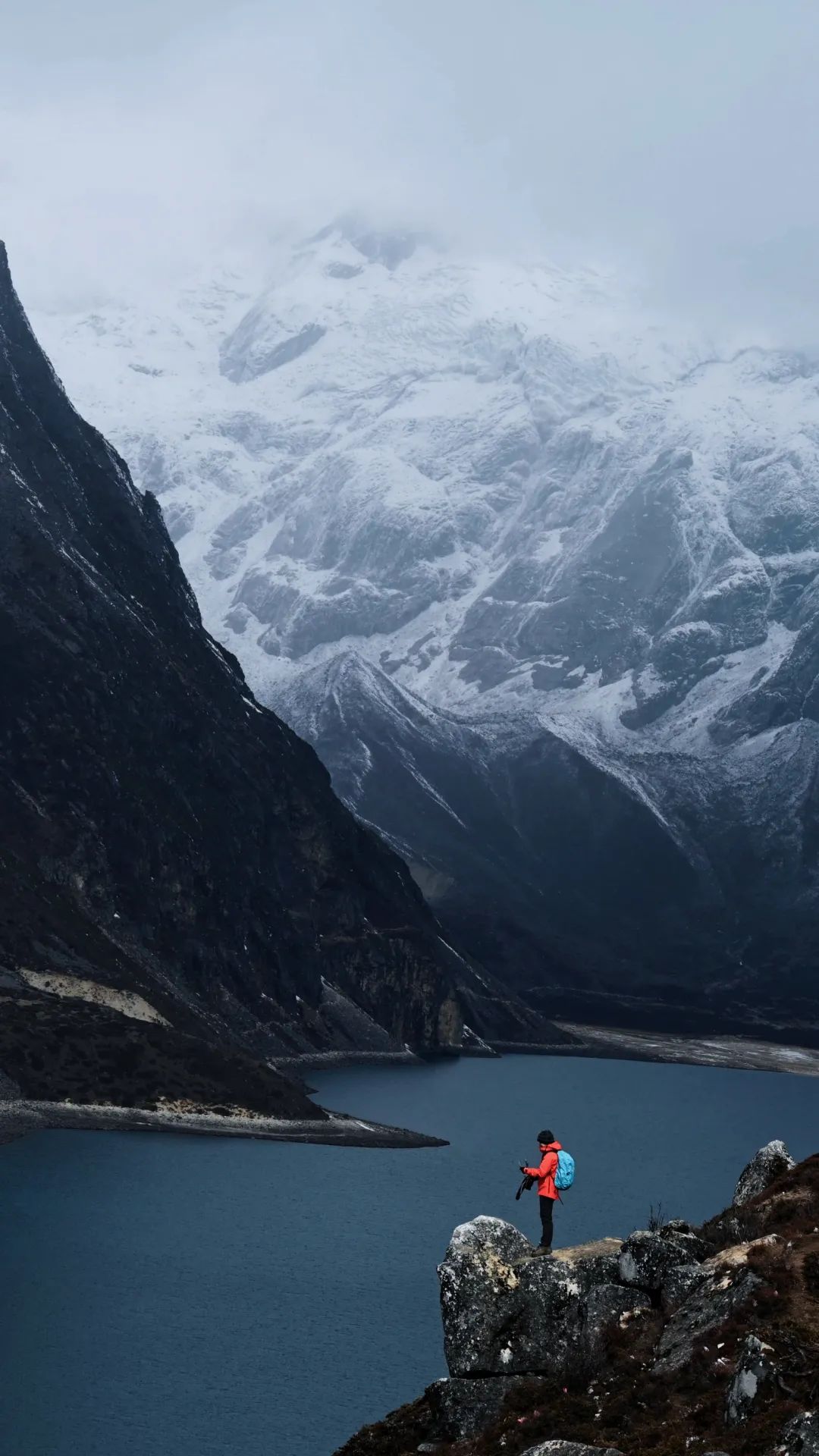 往返约 4KM(上下山脊,体能好可下到湖边),累计爬升 280M,天气一扫阴霾,晴到炸裂,一望无际的蓝网住大地,没有一丝云,雪山泛着银光直插天际,冷冽生辉!