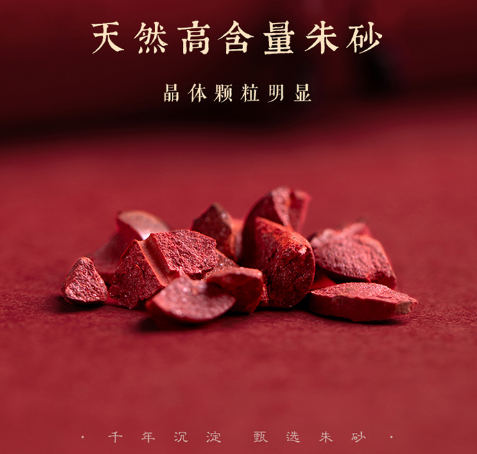 朱砂,又称辰砂、丹砂,是一种天然的硫化汞矿物 。它的颜色鲜艳,呈大红色,有着一种与生俱来的神秘与高贵气质。在古代,朱砂就备受尊崇,不仅被用于炼丹、书画创作,还被视为辟邪、祈福的圣物。