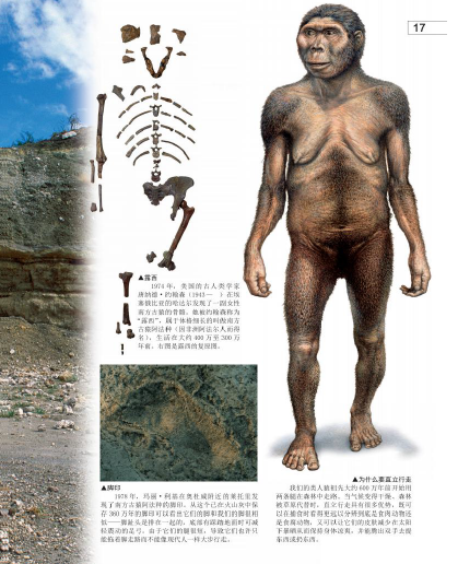 大约在190万年前,在非洲进化出了一种身体大小和比例都与我们现代人相同的人类,叫作东非直立人。他们有长腿和短胳膊,身高可以长到1.8米,这被认为是最早的人类▽