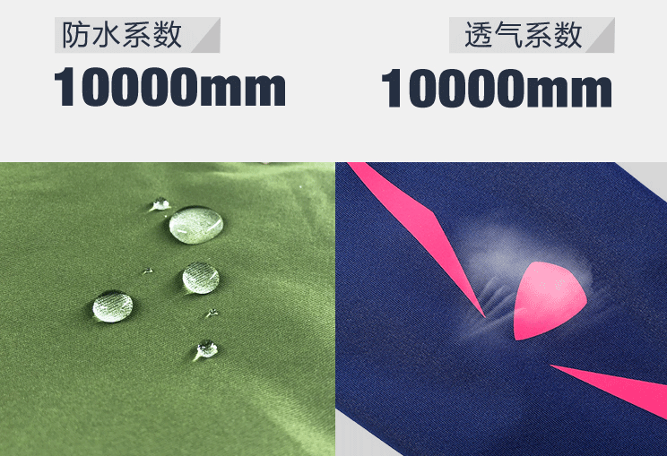 简单来讲就是让10000mm高的水柱压在冲锋衣上面,24小时内从面料渗出的水不超过3滴!(Ps:理论上来说,当一件冲锋衣防水系数达到5000以上,透气性能超过3000,就是一件合格的冲锋衣了。)