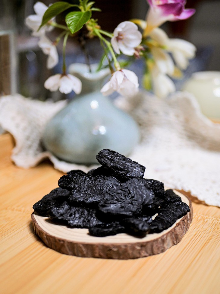 乌黑油亮的地黄柔韧如皮绳,含一片在舌底,甘甜层层晕开,竟有蜂蜜余韵。