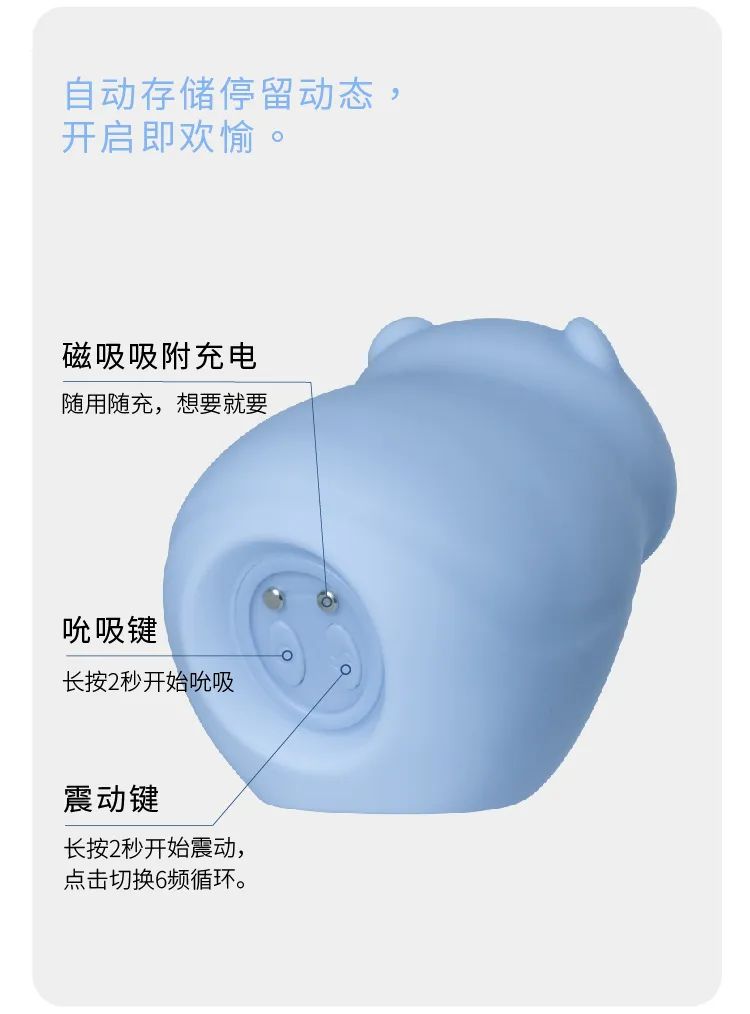 不是外观丑或者吓人,就是功能设计完全get不到我的点,用起来只有麻木或者疼痛的感觉,毫无快感可言。最近闺蜜送了我一个生日礼物,是情趣小玩具,还特意跟我说是UZZE×冈本联合推出首款情趣SPA玩具。冈本?是我知道的那个冈本吗?他们竟然有情趣玩具了!收到礼物后我迫不及待地打开,是一只非常可爱的蓝色小水豚,我一眼就爱上了!这比那些拟真的棒棒可爱多了,而且拿在手里手感非常软糯舒服,像婴儿的皮肤一样柔软,这质感绝了,不愧是冈本出品,绝对是精品了。当晚我就沐浴更衣选好音乐,躺在床上开始尝试这个小玩具。它的吮xi口还是自动感应的,要贴在皮肤上才会启动吮xi,这一点真的非常智能了(也是很省电的设计呀)。一开始我直接开启吮xi口然后对着我最敏gan的那个点,然后发现,感觉不太大?只有轻微的震动感,仿佛隔靴搔痒。难道是我用得不对吗?
