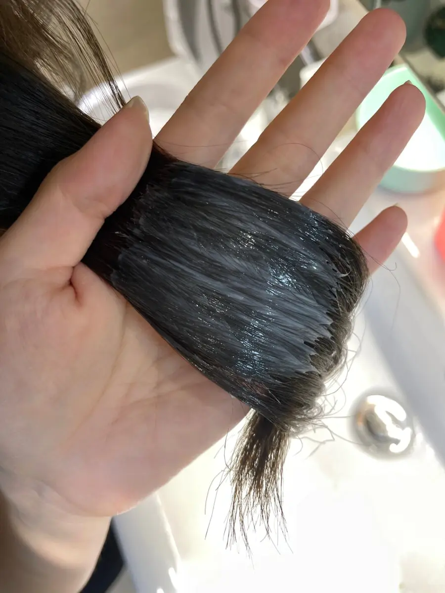 4️⃣湿发拧干,将发膜涂在发尾,等5分钟