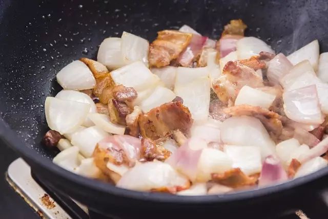 ▼ 3.加洋葱 :锅内加入洋葱,大火翻炒,炒到洋葱变软,散发出香味。