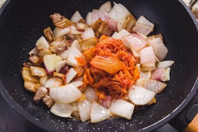 »多放些辣白菜的汤汁会更加好吃入味,也能中和五花肉的腻~