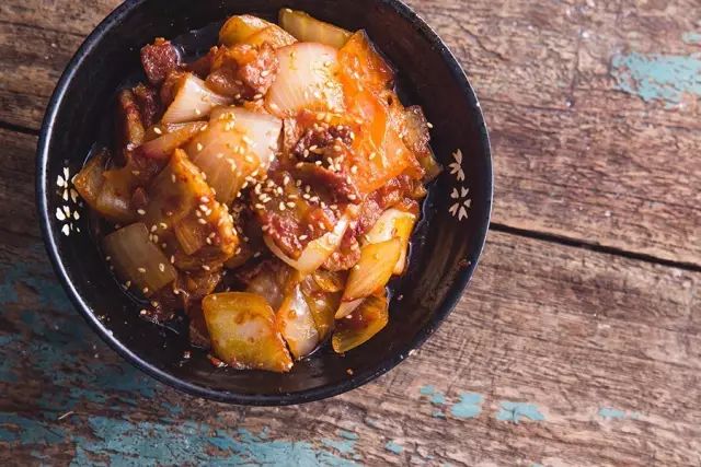 红红的一碗泡菜炒五花肉,甜中带辣,混着肉香好吃的不行,要不要尝尝看?