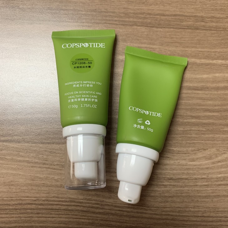 看似软管,却配了一个泵头,是一个乳液泵,而且里面是没有吸管的,相当于真空瓶一样,在使用时一定要先挤掉里面的空气,使用时也可以捏住软管再按压泵头,这样更容易出霜。